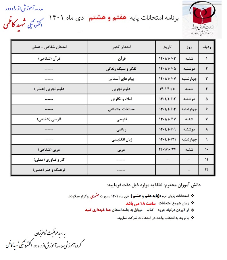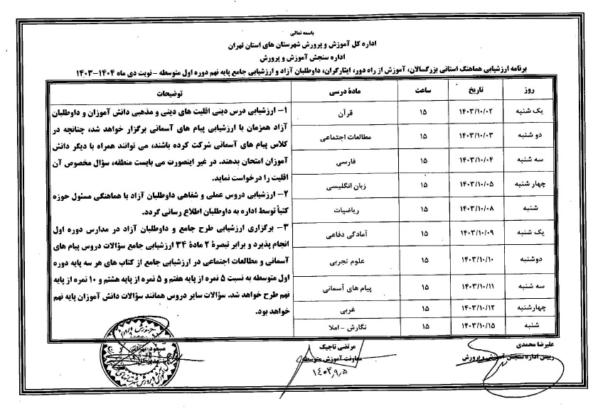 کلیدواژه ها: امتحانات پایه نهم متوسطه اول